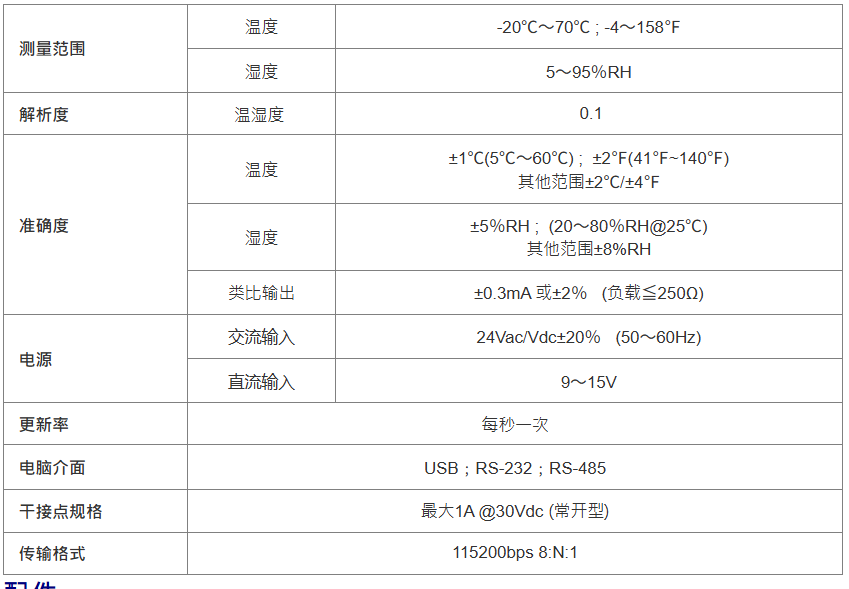 型号/功能二氧化碳湿度温度日志时钟RS-232RS-485RELAY*14-20A