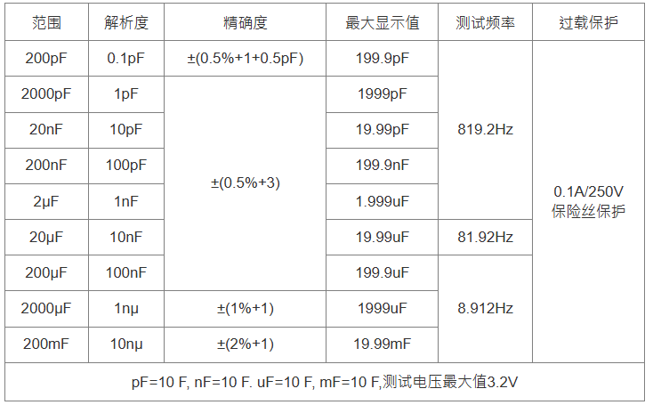 ♦档位选择: 9个测试档位,200pF~20mF